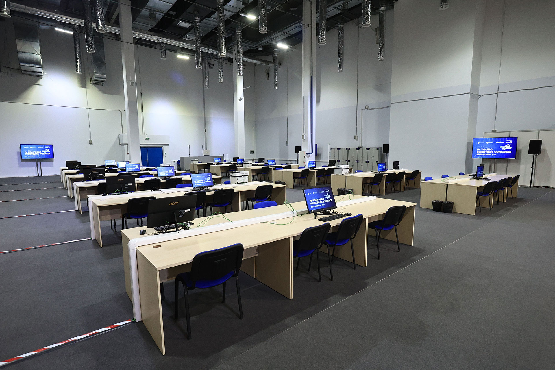 Назначение: рабочая зона для представителей СМИ. В зале предусмотрено 50 оборудованных рабочих мест, а также 100 мест с возможностью подключения собственной техники. Персональное закрепление рабочих мест (за представителем СМИ или организацией СМИ) не предусмотрено.