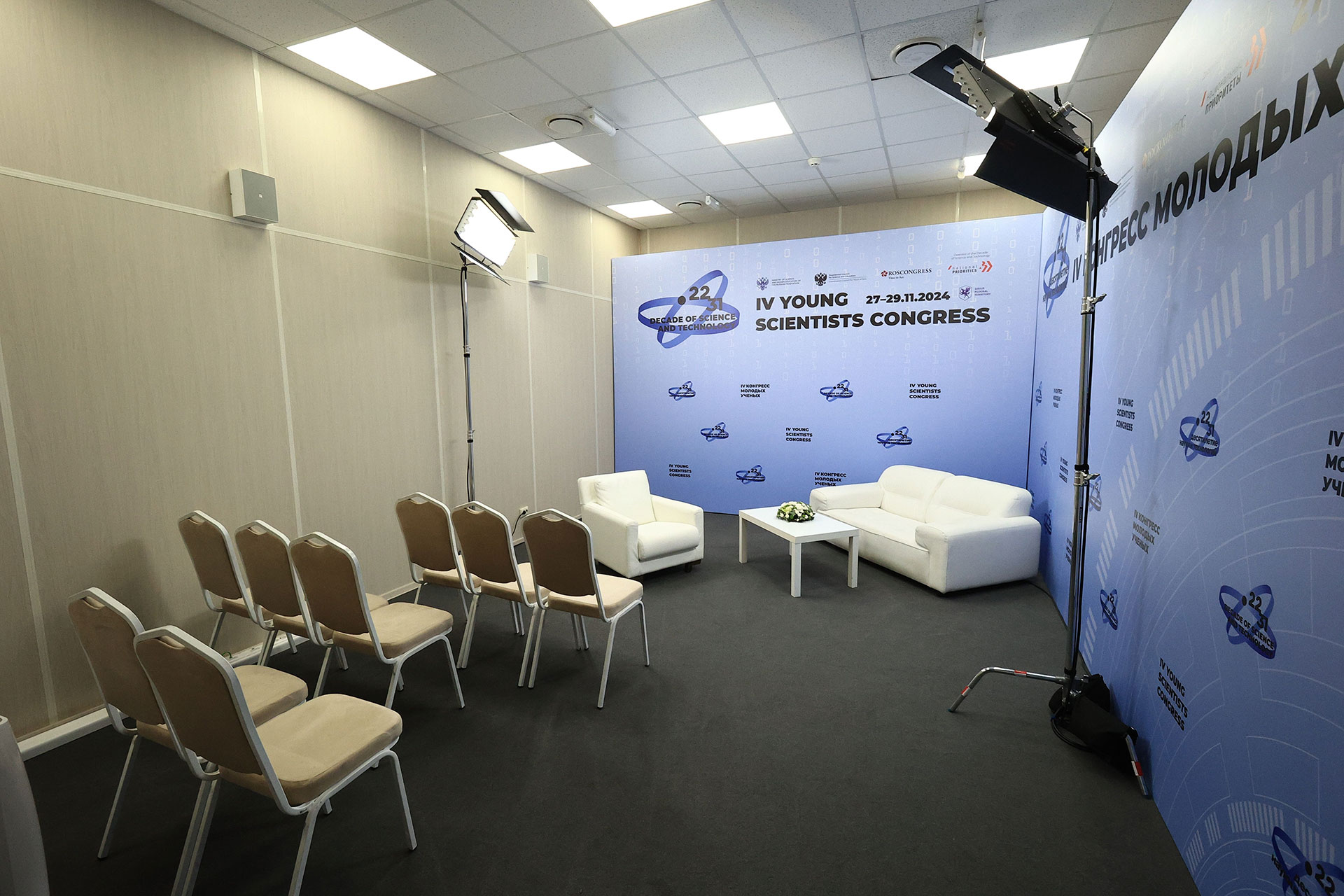 Пресс-центр V Конгресса молодых ученых — это современная интерактивная площадка для комфортной работы представителей СМИ. Пресс-центр находится на 2-м этаже Университета «Сириус».